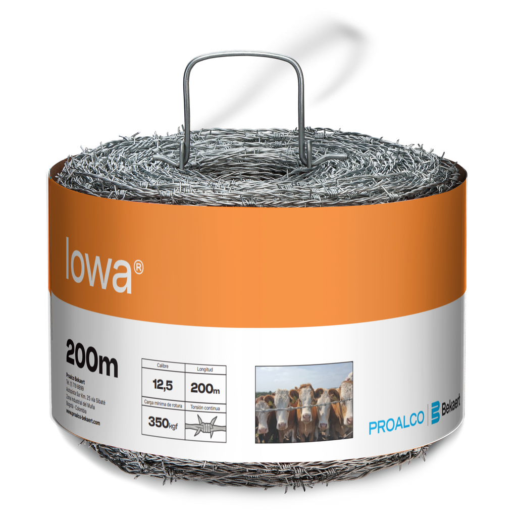 El alambre de púas Iowa® es fabricado con alambre galvanizado. Es un alambre de púas de tradición, de calibre grueso con la púa entrelazada en la línea del alambre. Garantiza que sus animales permanezcan en terrenos seguros. Ideal para climas templados y fríos. Resistencia a la rotura. Puntas afiladas. Apariencia brillante. Torsión constante Púa entrelazada en la línea de alambre.