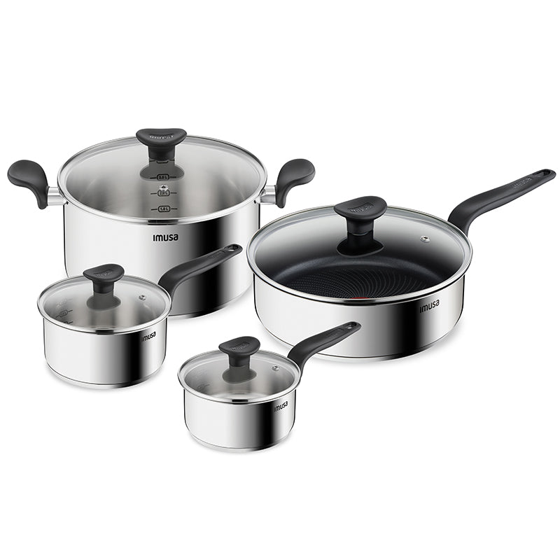 Productos fabricados en acero inoxidable premium, de aleación 18/10. 100% apto para el contacto con alimentos Mangos y asas fenólicos que no se calientan, para mayor facilidad de manejo y completa seguridad en la cocina. Apto para todo tipo de estufas, incluyendo inducción.