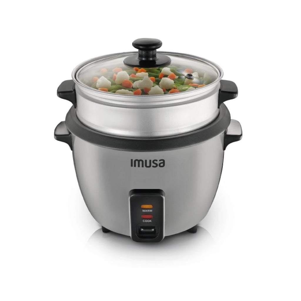 Olla Arrocera Gris 3 Tazas IMUSA La arrocera IMUSA te permite cocinar perfectamente cualquier tipo de arroz, garantiza una cocción perfecta del arroz. • Cuenta con una capacidad de 3 tazas. • Incluye cesta de vapor para cocinar saludablemente. • Recipiente antiadherente y removible que facilita la limpieza. • Incluye cuchara y taza medidora para obtener la medida perfecta. Garantía de 1 año, respaldo y calidad IMUSA. ¡En tu Cocina y Hogar está IMUSA! Solo para uso doméstico. No calientes o utilice el producto sin alimento en el interior. No uses utensilios metálicos ya que pueden deteriorar el antiadherente. No almacenes alimentos en el producto ya que puede generar manchas y,s de color. No cortes alimentos dentro del producto. Usar utensilios de silicona, madera o nylon.