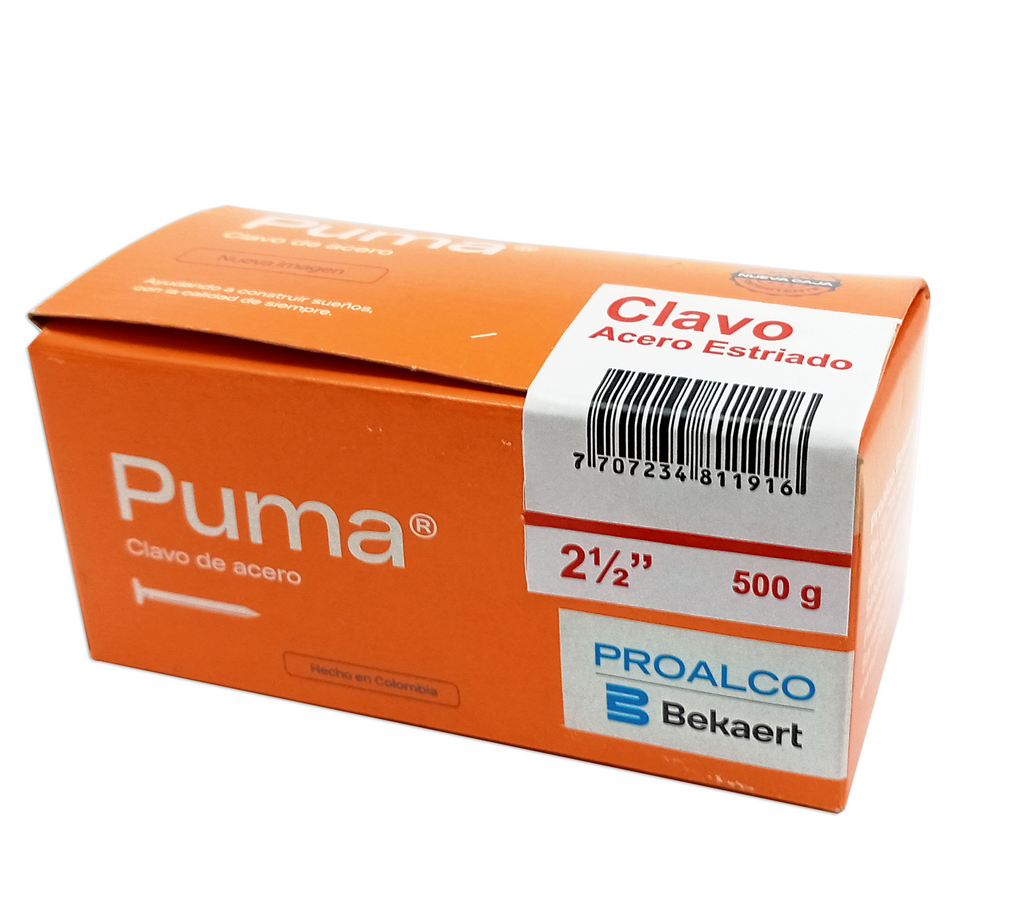 "Clavo con terminado galvanizado y estrías verticales.Alta resistencia yagarre. Para uso en muros o bloques de cemento y concreto, pisos decemento y asfalto, vigas y columnas, entre otros"