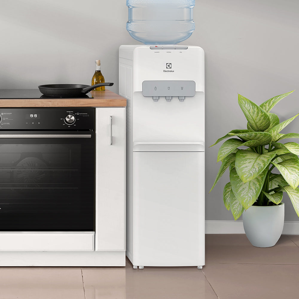 "Diseño funcional y elegante.Uso doméstico o uso comercialTraba de seguridad: Para evitar posibles quemaduras con el agua calienteSalida de agua independiente.3 opciones de temperatura: Fría, caliente o a temperatura ambiente. Perforador de galón: De esta manera será fácil y rápido cambiar la botella cuando se acabe la que está en uso. Gabinete inferior: Para almacenar bebidas y alimentos" "Mantente hidratado y refrescado todo el dia3 opciones de temperatura para que pueda disfrutar de agua helada, caliente o natural siempre que lo necesiteSistema de enfriamento muy eficiente•Enfriamento por compresor, lo que garantiza un agua mas refrescante en menos tiempo. •Capacidad de enfriamento de 2 L/H y flujo de agua de 1L/min"