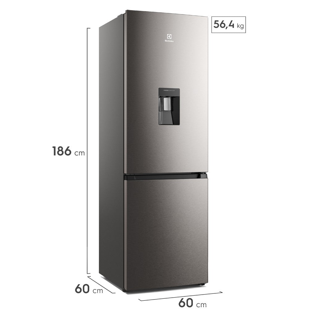 "TECNOLOGIA AUTOSENSE: Ajusta automáticamente la temperatura de la nevera. Alargando la vida de los alimentos hasta un 30%* INVERTER: Condiciones ideales para conservar los alimentos. Asegura una temperatura interna constante, lo que permite un ahorro de energía de hasta un 67%²DISEÑO COMPACTO Y INNOVADOR: 60Cm de ancho, Optimiza el espacio en tu cocina. ¡Perfecto para espacios pequeños!CONGELADOR EN LA PARTE INFERIORPUERTAS REVERSIBLESDISPENSADOR DE AGUA10 AÑOS DE GARANTIA EN EL COMPRESOR" El Refrigerador No Frost Bottom Freezer Electrolux (ERBA29V3HVB), es un refrigerador con congelador inferior que incluye la función AutoSense, que ajusta automáticamente la temperatura, lo que garantiza una mejor conservación de sus alimentos, lo que le permite extender la vida útil de los alimentos hasta un 30%* más, evitando que se echen a perder para que pueda garantizar más sabor y frescura para las comidas de su familia. con menos desperdicio de alimentos.