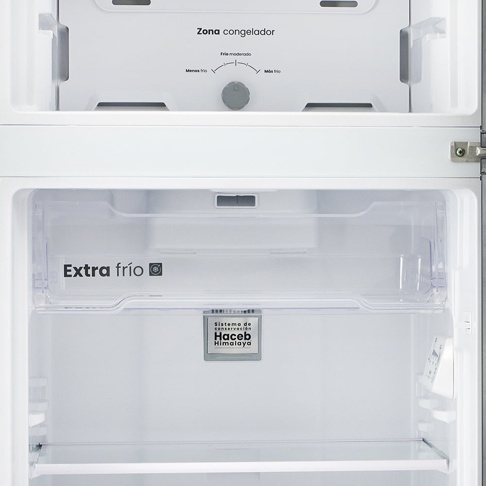 Además, incluye un fabricador de hielo con cubos 65% más grandes, ideales para mantener tus bebidas frías por más tiempo. Su exclusivo sistema de conservación Haceb Himalaya combina 5 componentes que mantienen tus alimentos frescos por más tiempo: fríos sectorizados, temperatura estable en cada zona, flujos de aire óptimos, compartimiento extra-frío y bandeja especial para frutas o verduras.