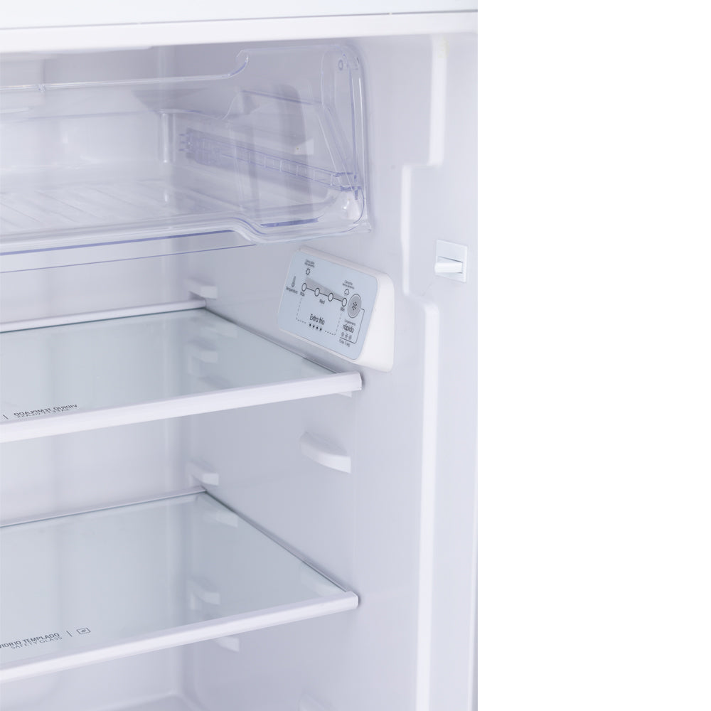 Nevera Haceb Inox negra de 271 litros brutos, diseñada para alargar la vida de tus alimentos, única con sistema de conservación Himalaya de 5 componentes: frio sectorizado y estable en cada zona, corrientes de frio óptimas, separador de frutas y verduras y compartimiento extra-frio. Cuenta con iluminación tipo LED de gran alcance para mayor visual y menos sombras, amplio espacio interior con distribución modular para que ordenar sea un placer y un novedoso fabricador de hielo que te entrega hielos grandes y fáciles de sacar, disfruta tus bebidas frías por más tiempo. "Nevera 271 Litros Haceb - Manija -Inox negra, Nevera todo terreno clase climática T, Sistema de multi posición de almacenamientoAgua a un pushBandejas con control de humedadBandeja de carnes y descongelaciónIluminación LED"