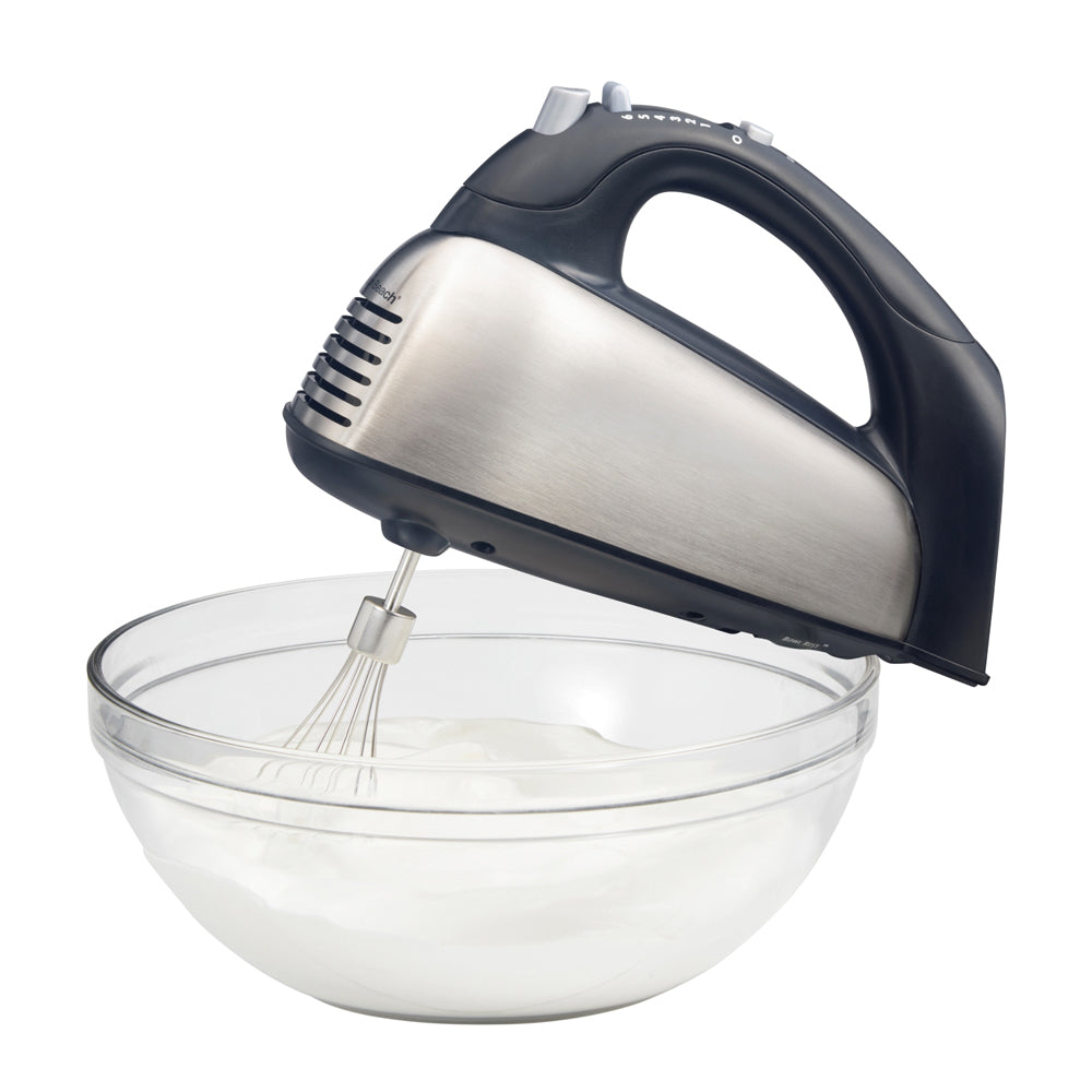 BATIDORA CLÁSICA 6 VELOCIDADES (HB) • Se dobla como una batidora de mano • La potencia máxima de 290 vatios facilita la mezcla Shift & Stir ™ bol • El juego de accesorios versátil incluye batidores tradicionales, ganchos para batir y masa • Acero cepillado sin manchas • 4 qt. cuenco de acero inoxidable • 6 velocidades y botón QuickBurst ™ • Estabilizador mezclador Bowl Rest ™