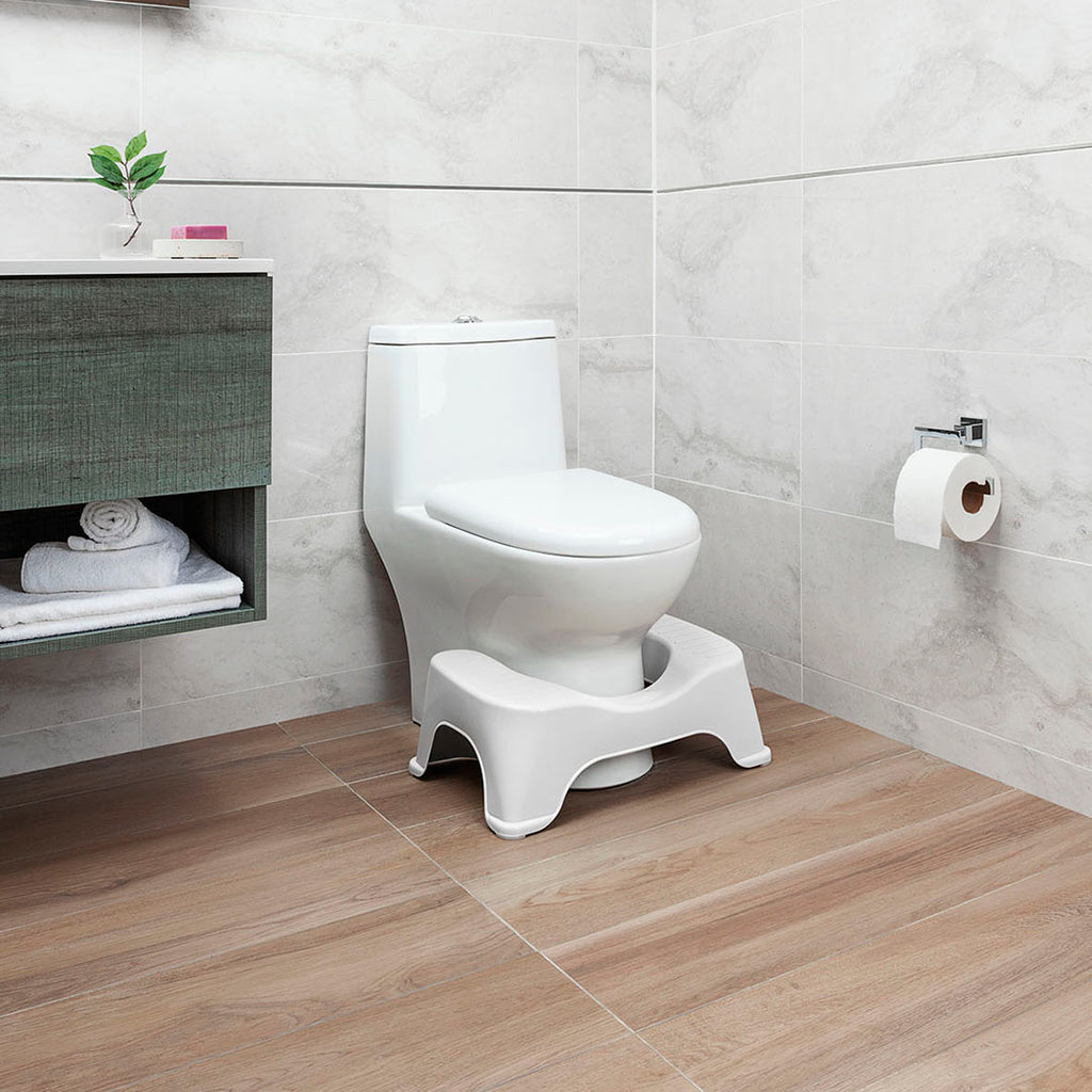 Diseño exclusivo para una posición ergonómica El inodoro occidental modifica la posición natural del cuerpo dificultando la evacuación intestinal. Cuando se está sentado en el inodoro, la posición ideal es la de cuclillas, de esta manera se obtiene la posición natural en el ángulo correcto, que facilita la evacuación intestinal.