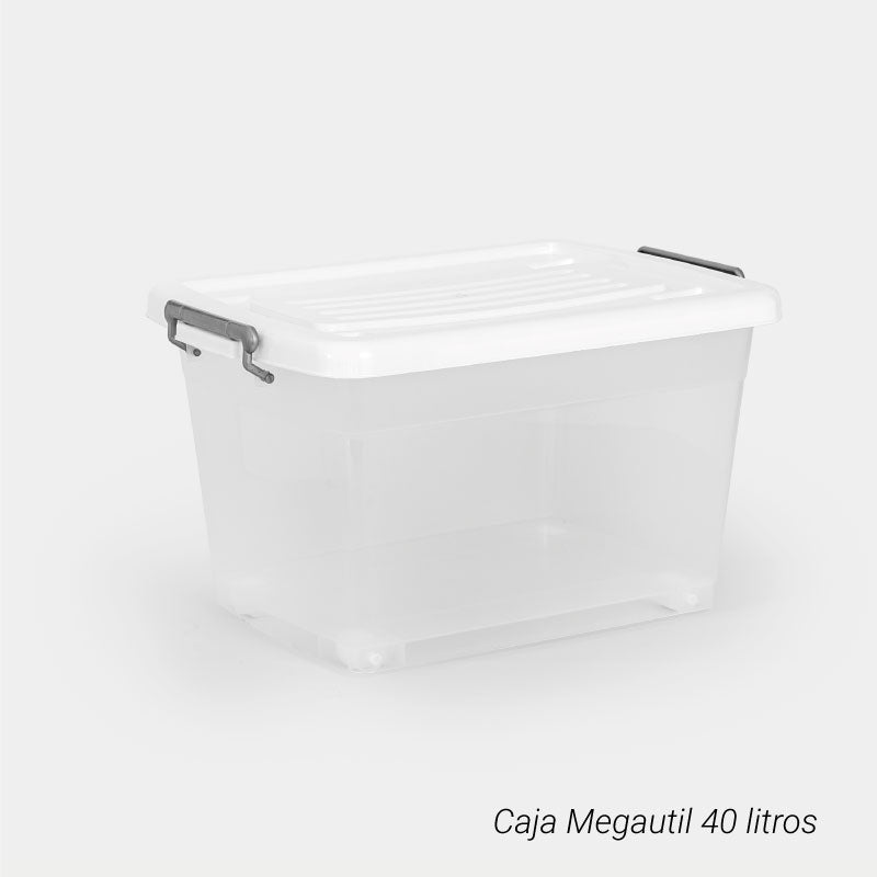 CAJA MEGAUTIL CON RUEDAS 40 L X 6 UND TRANSPARENTE BLANCO