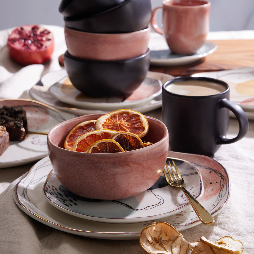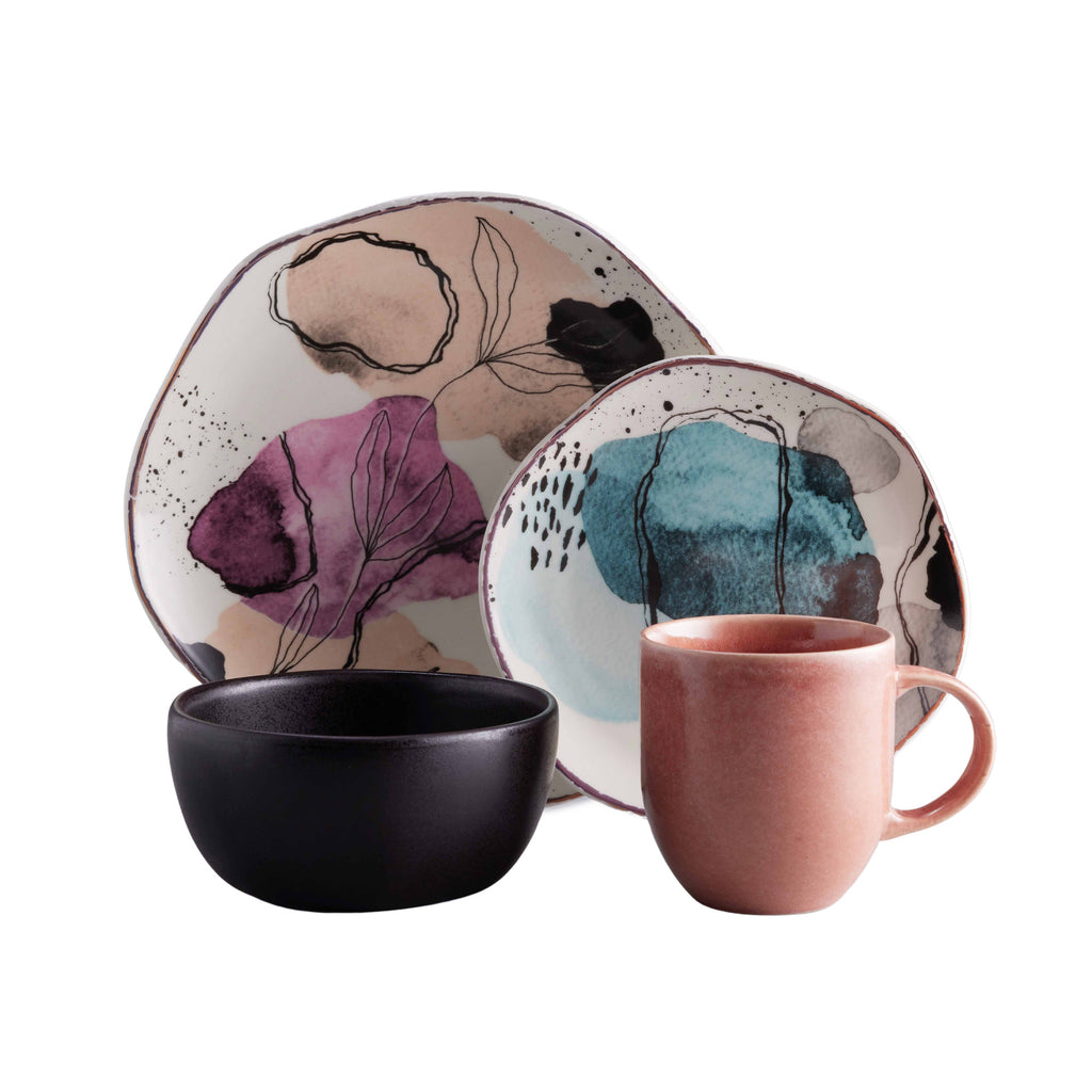 Vajilla 4 puestos 16 piezas Tiene Plato Pando, hondo, postre y mug Hojas - formas irregulares