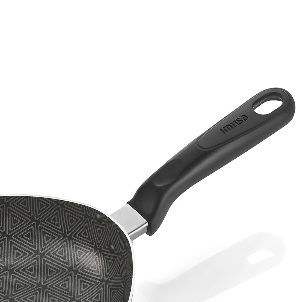 La línea Talent te ayudará ahorrar tiempo en la cocina, cuenta con Antiadherente TRIFORCE, 3 veces más durable comparado con los productos de la línea básica de IMUSA. Base difusora especial para distribuir de manera uniforme el calor. ¡Es hasta 3 veces más durable! Cuenta con Termo Señal cambia de color e indica que está listo para empezar a cocinar, así conservas mejor la textura y nutrientes de los alimentos. • Cuenta con el sello de Calidad IMUSA. • Los productos de IMUSA están fabricados con aluminio de alta pureza, certificados que cuidan y protegen la salud. • Cumple con las normas y estándares internacionales, para que sea amigable con el ambiente y cuide la salud. Solo para uso doméstico. No calientes sin alimento en el interior. La llama no se debe extender hasta las paredes del producto. No introduzcas en hornos convencionales ni microondas. Siempre usa protección para retirar el producto después de usarlo. No uses utensilios metálicos ya que pueden deteriorar el antiadherente. No almacenes alimentos en el producto ya que puede generar manchas y cambios de color. No cortes alimentos dentro del producto. Usar utensilios de silicona, madera o nylon.