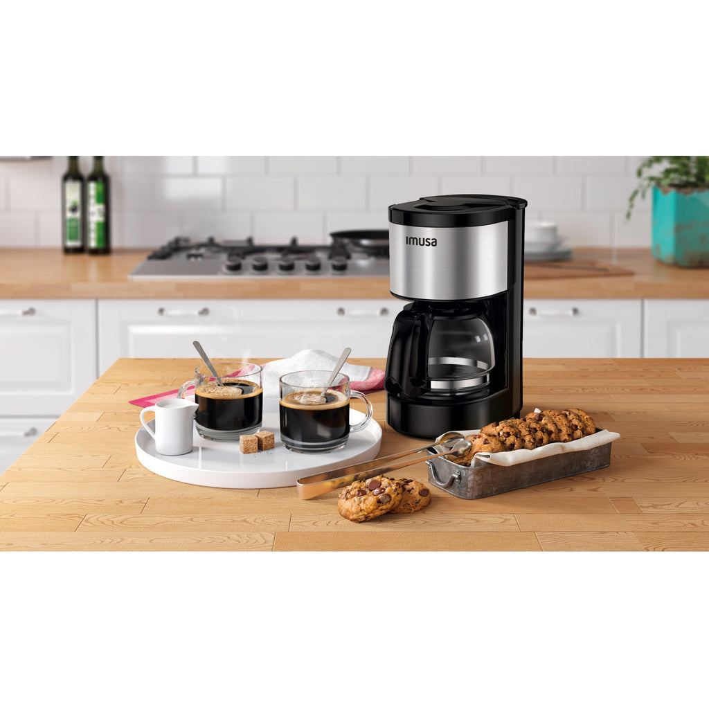 "1. Capacidad de 6 tazas grandes o 12 tazas pequeñas.2. Jarra de vidrio de 600 ml con indicador de contenido.3. Modernos acabados en acero inoxidable.4. Cuenta con un sistema antigoteo, el cual permite retirar la jarra mientras el café está siendo preparado.5. Filtro permanente incluido.6. Botón de encendido con indicador luminoso." La CAFETERA PERFECTTA INOX, cuenta con una capacidad versátil desde 6 tazas grandes hasta 12 tazas pequeñas de cafè. Su jarra de vidrio de 600 ml viene con un práctico indicador de contenido. Sus modernos acabados en acero inoxidable le dan un toqueelegante y duradero.Ademas, incorpora un eficiente sistema antigoteo,el cual permite retirar la jarra ientras el café se prepara sin derrames. Por ultimo, dispone de un botón de encendido con indicador luminoso que facilita su uso y control.