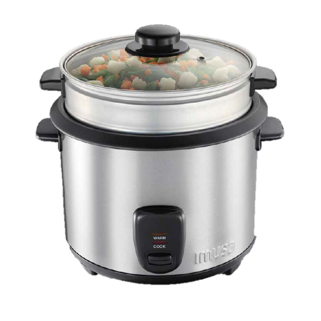 1. Permite cocinar perfectamente cualquier tipo de arroz, garantiza una cocción perfecta del arroz. 2. Permite cocinar perfectamente cualquier tipo de arroz y cereal sin supervisión gracias a su función de cocción automática. 3. Cuando el arroz está listo pasa a la función de mantener caliente para conservar una temperatura ideal. 4. Cuenta con una capacidad de 1.8 litros. 5. Incluye cesta de vapor para cocinar saludablemente. Olla arrocera en acero inoxidable con capacidad de 5 tazas