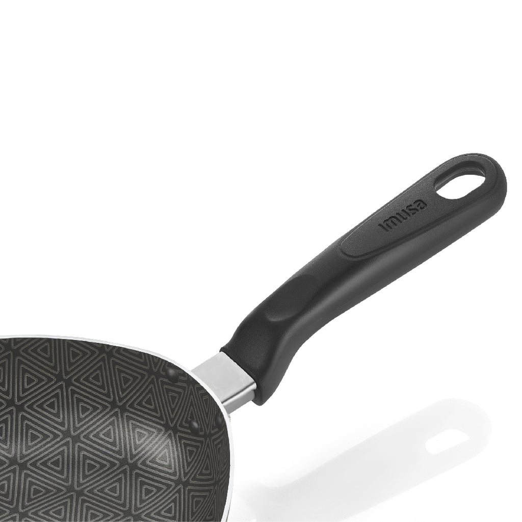 La línea Talent te ayudará ahorrar tiempo en la cocina, cuenta con Antiadherente TRIFORCE, 3 veces más durable comparado con los productos de la línea básica de IMUSA. Base difusora especial para distribuir de manera uniforme el calor. ¡Es hasta 3 veces más durable! Cuenta con Termo Señal cambia de color e indica que está listo para empezar a cocinar, así conservas mejor la textura y nutrientes de los alimentos. • Cuenta con el sello de Calidad IMUSA. • Los productos de IMUSA están fabricados con aluminio de alta pureza, certificados que cuidan y protegen la salud. • Cumple con las normas y estándares internacionales, para que sea amigable con el ambiente y cuide la salud. Solo para uso doméstico. No calientes sin alimento en el interior. La llama no se debe extender hasta las paredes del producto. No introduzcas en hornos convencionales ni microondas. Siempre usa protección para retirar el producto después de usarlo. No uses utensilios metálicos ya que pueden deteriorar el antiadherente. No almacenes alimentos en el producto ya que puede generar manchas y cambios de color. No cortes alimentos dentro del producto. Usar utensilios de silicona, madera o nylon.