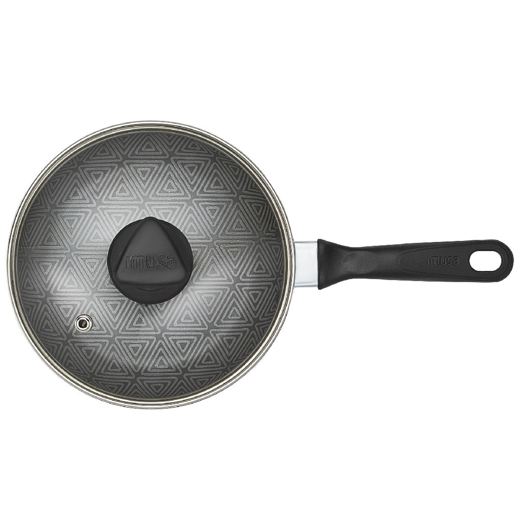 La línea Talent te ayudará ahorrar tiempo en la cocina, cuenta con Antiadherente TRIFORCE, 3 veces más durable comparado con los productos de la línea básica de IMUSA. Base difusora especial para distribuir de manera uniforme el calor. ¡Es hasta 3 veces más durable! Cuenta con Termo Señal cambia de color e indica que está listo para empezar a cocinar, así conservas mejor la textura y nutrientes de los alimentos. • Cuenta con el sello de Calidad IMUSA. • Los productos de IMUSA están fabricados con aluminio de alta pureza, certificados que cuidan y protegen la salud. • Cumple con las normas y estándares internacionales, para que sea amigable con el ambiente y cuide la salud. Solo para uso doméstico. No calientes sin alimento en el interior. La llama no se debe extender hasta las paredes del producto. No introduzcas en hornos convencionales ni microondas. Siempre usa protección para retirar el producto después de usarlo. No uses utensilios metálicos ya que pueden deteriorar el antiadherente. No almacenes alimentos en el producto ya que puede generar manchas y s de color. No cortes alimentos dentro del producto. Usar utensilios de silicona, madera o nylon.