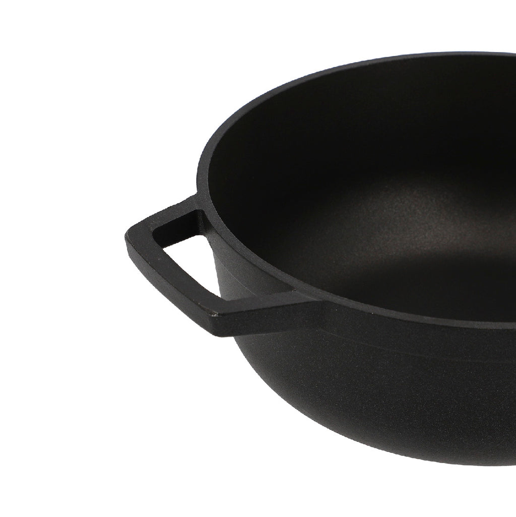 En aluminio fundido que permite excelente difusión y conservación de calor dándole mayor crocancia a tus alimentos. Antiadherente Negro. Con fondo antideslizante y asas más grandes. Cuenta con tapa de vidrio con válvula de salida de vapor. Solo para uso doméstico. No calientes sin alimento en el interior. La llama no se debe extender hasta las paredes del producto. No introduzcas en hornos convencionales ni microondas. Siempre usa protección para retirar el producto después de usarlo. No uses utensilios metálicos ya que pueden deteriorar el antiadherente. No almacenes alimentos en el producto ya que puede generar manchas y s de color. No cortes alimentos dentro del producto. Usar utensilios de silicona, madera o nylon.