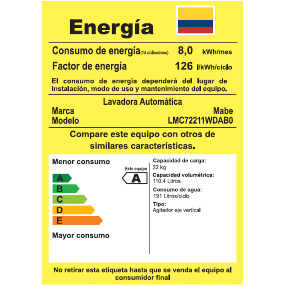 CAPACIDAD DE CARGA (LAVADO): 22
