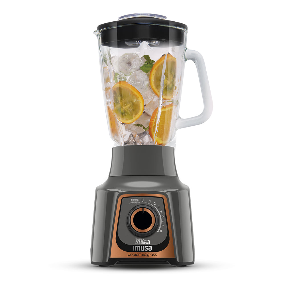 ¡Resultados perfectos en tus preparaciones! La licuadora PowerMix Glass de 8 velocidades, edición especial de 90 años de IMUSA cuenta con una potencia de 550 watts, un vaso con una capacidad de 1,75 litros y 8 velocidades, incluidas la función de pulso / Auto limpieza, tiene 4 cuchillas en acero inoxidable con refuerzo en cromo y tecnología ZELKROM para un alto poder de corte. No te quedes sin tu licuadora edición especial 90 años de IMUSA con diseño único. ¡Llévala y tritura hasta los ingredientes mas duros! 1. Potencia de 550 Watts2. 8 Velocidades + Pulso + Autolimpieza3. Capacidad de 1.75 Litros4. Cuchillas ZELKROM5. Motor Durable6. Sistema de Seguridad7. Guardacable.8. Hecho en Colombia9. Garantía de 2 años.