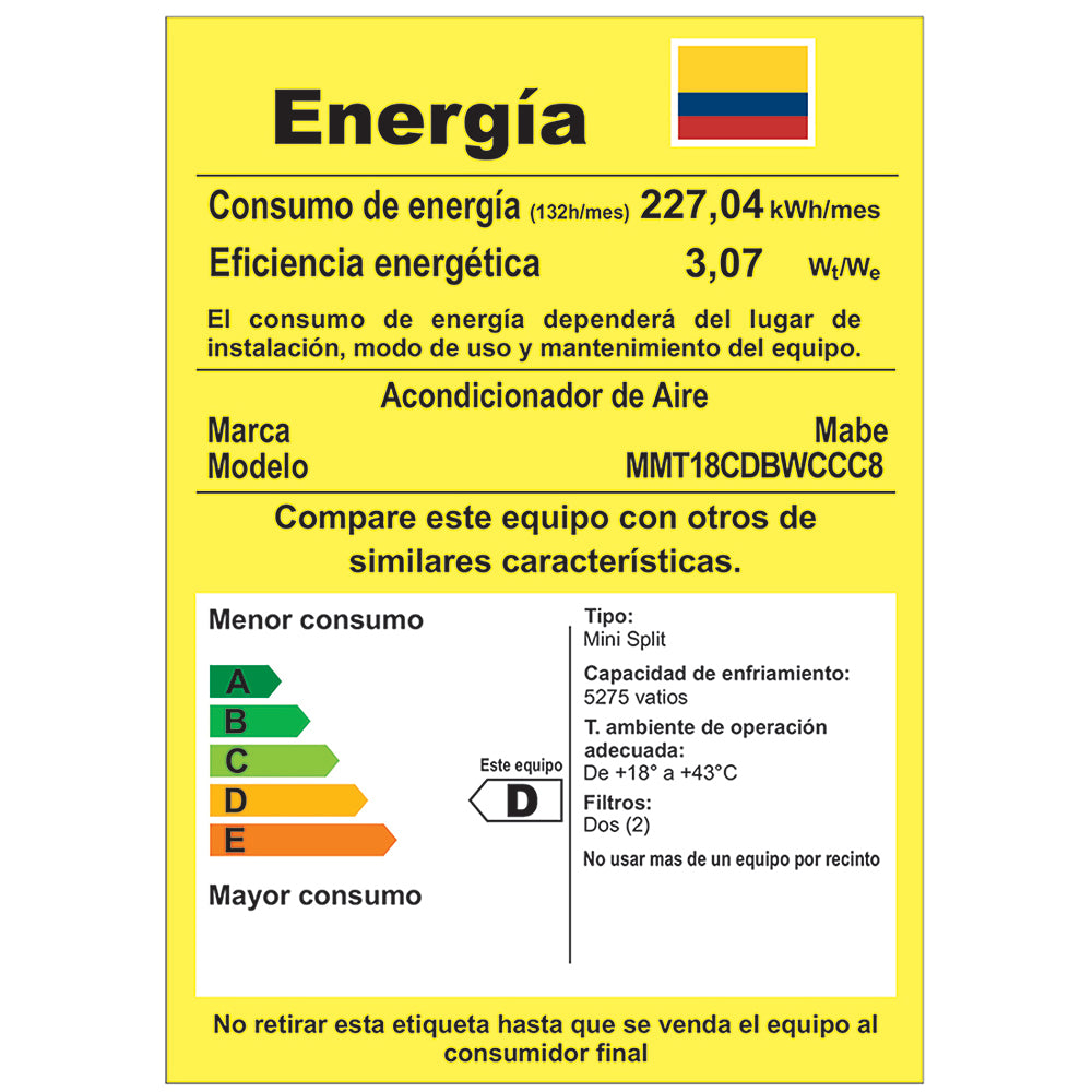 | CONSUMO DE ENERGÍA (KWH/MES): | 227.04 |