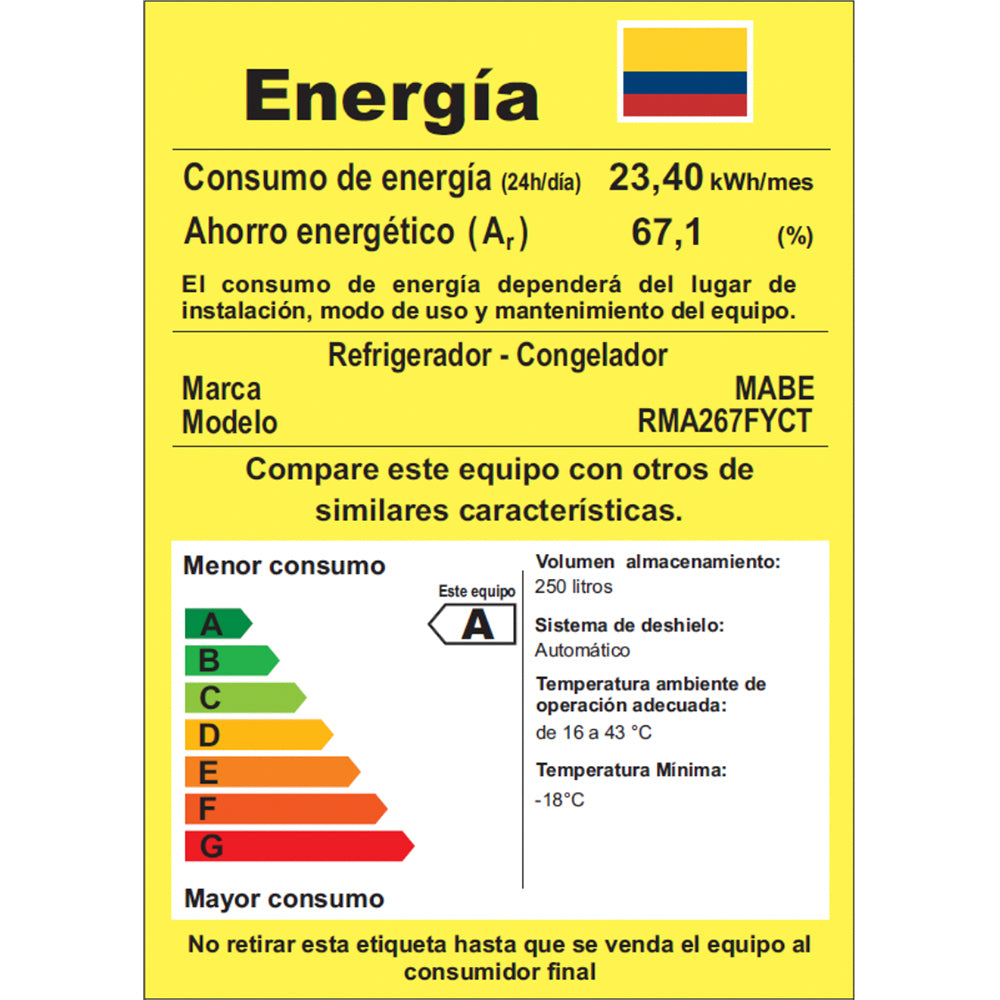 Nevera No Frost Mabe de 267 Litros Platinum RMA267FYCT