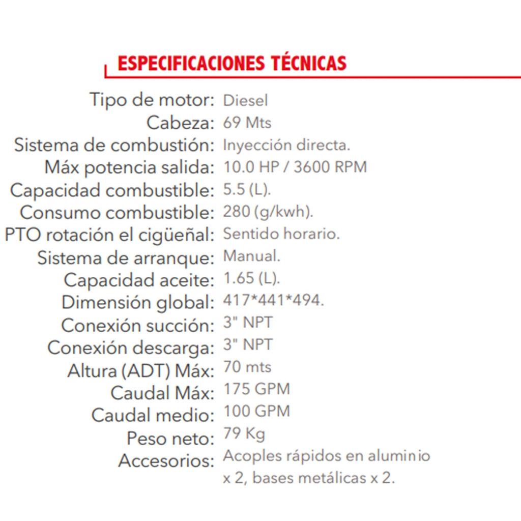 Motobomba Diesel Alta Presión 3X3 Pulg, Motor Tipo Fa, 10 Hp TX186FA-3H-PY