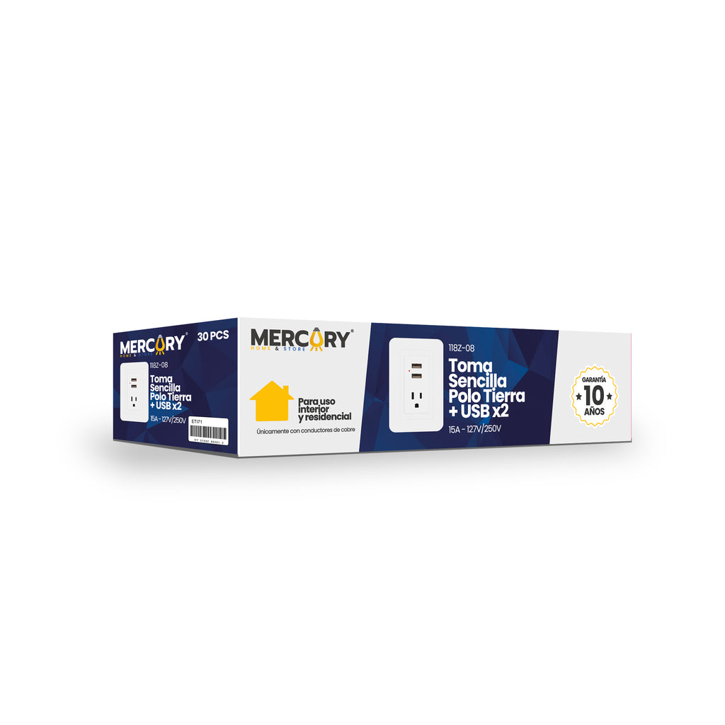 Toma Sencillo Polo a Tierra con USB Blanco ETI71