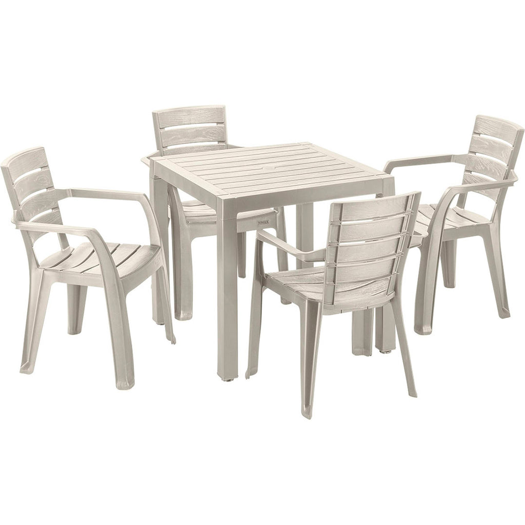 4 puestos desarmable, con tacón nivelador, textura imitación madera La Mesa Barú de apariencia madera es simple y elegante, inspirada en una textura natural que transmite tranquilidad, relajación y armonía, lo que la hace que sea el complemente ideal para el espacio de tu casa, finca u oficina. La Mesa Barú color taupe está fabricada en resina, un material resistente al agua y que permite una mayor duración del producto.