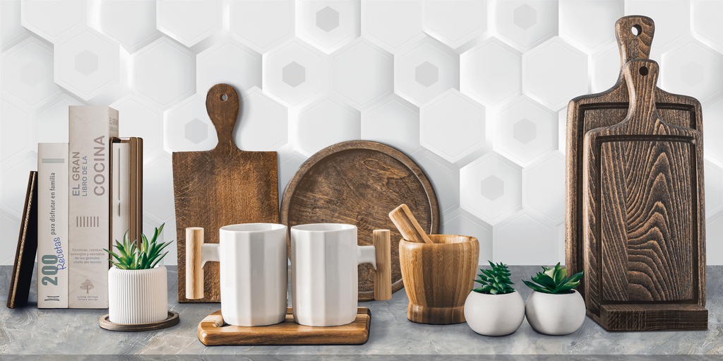 "Con un diseño de alto realismo y formato 30x60 cm, la Base Decorada Birka multicolor es una propuesta que conjuga la sofisticación del mármol con la calidez de la madera, creando un ambiente acogedor y contemporáneo en la cocina. Sus tonalidades vívidas y su textura detallada evocan la naturaleza misma, mientras que su acabado brillante resalta los patrones y las vetas, añadiendo una sensación de lujo y elegancia a cualquier espacio culinario. "
