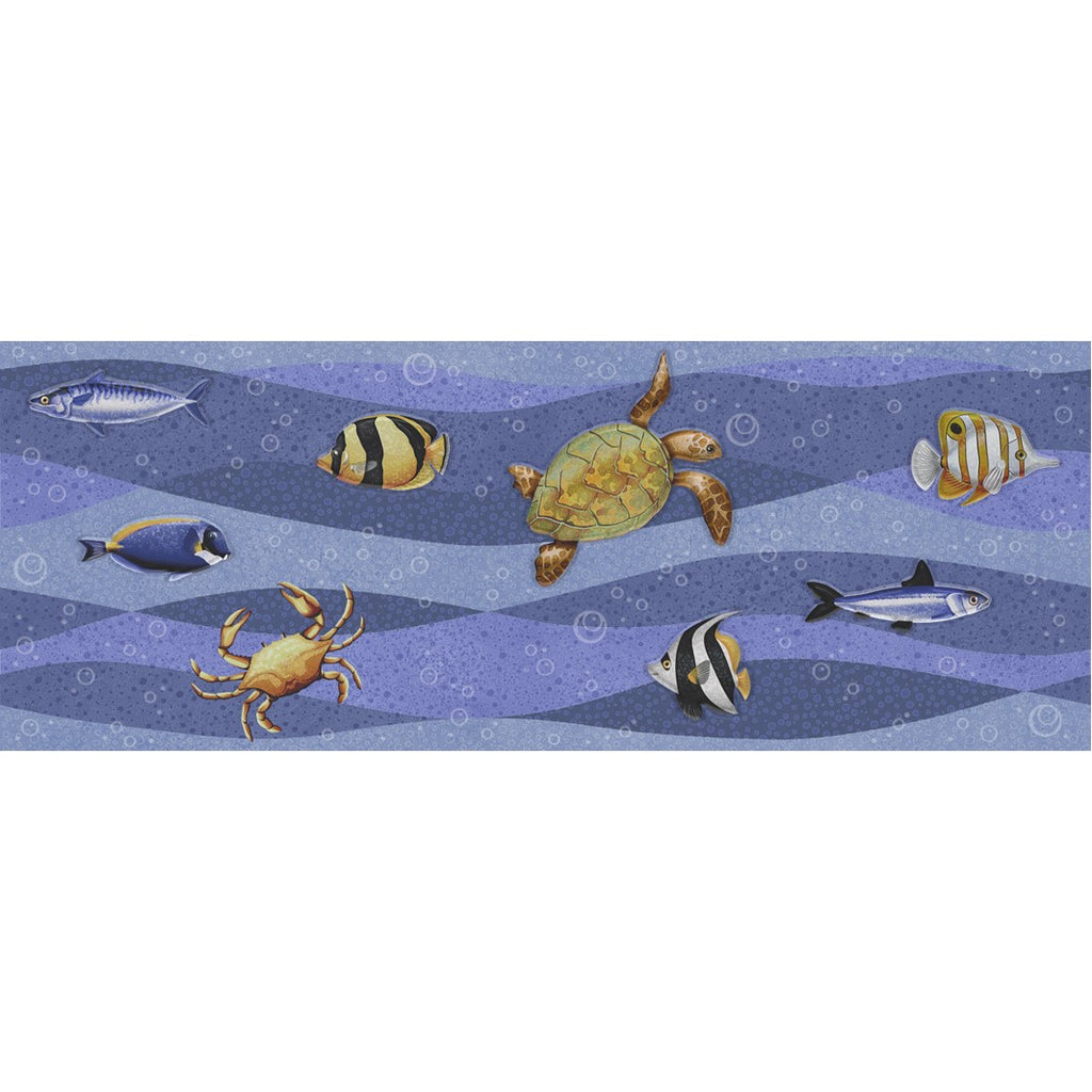 Listón decorado en formato 15x40 con ilustraciones de fauna marina complementadas con geometrías de ondas que representan las olas del mar con un toque moderno. Ideal para instalar en baños y zonas húmedas. Su acabado es brillante y viene enriquecido con granillas y microestructuras.