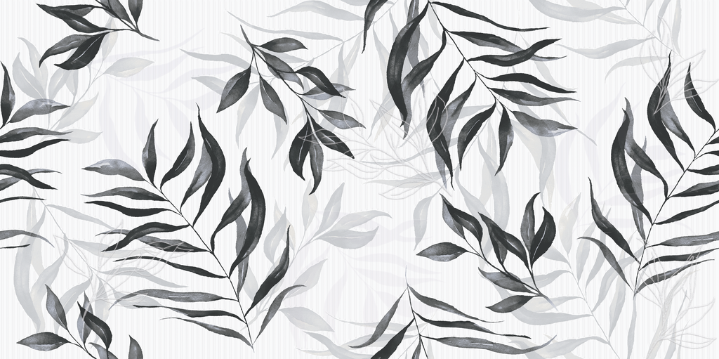"El Mural Sereni Gris de tres piezas ofrece contrastes sutiles, donde el blanco y el negro se entrelazan para dar vida a hojas delicadas que forman exquisitos ramilletes. Cada pieza es una obra de arte en sí misma, capturando la delicadeza y la gracia de la naturaleza en cada detalle. En formato 30x60 cm, con un diseño meticuloso y una paleta de colores sofisticada, este mural añade un toque de refinamiento, simplicidad y elegancia a cualquier espacio. Con un acabado brillante y una composición de microestructura; lustre y granilla perlada, adquiere un alto valor estético, perfecto para elevar la decoración de cualquier espacio."