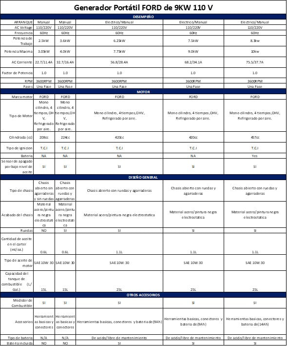 GENERADOR FORD DE ALTA POTENCIA 9,0KW PARA TRABAJO CONTINUO, DOBLE VOLTAJE , CONECTORES 220V A 50 AMP Y 30 AMP, MOTOR MONOCILINDRICO 15 HP DUAL FUNCIONA A GASOLINA Y GLP GENERADOR FORD DOBLE VOLTAJE 9,0 KW, A GASOLINAPara ver la ficha técnica haz clic aquí