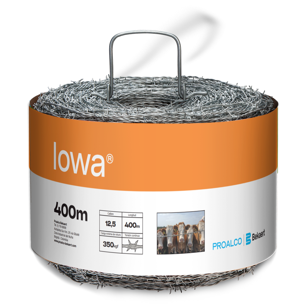 El alambre de púas Iowa® es fabricado con alambre galvanizado. Es un alambre de púas de tradición, de calibre grueso con la púa entrelazada en la línea del alambre. Garantiza que sus animales permanezcan en terrenos seguros. Ideal para climas templados y fríos. Resistencia a la rotura. Puntas afiladas. Apariencia brillante. Torsión constante Púa entrelazada en la línea de alambre.