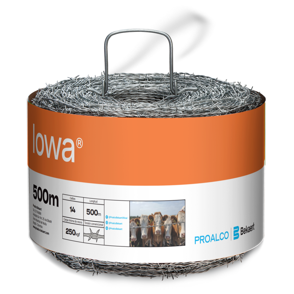 ¡APROVECHA! Descuento por volumen. El alambre de púas Iowa® es fabricado con alambre galvanizado. Es un alambre de púas de tradición, de calibre grueso con la púa entrelazada en la línea del alambre. Garantiza que sus animales permanezcan en terrenos seguros. Ideal para climas templados y fríos. Resistencia a la rotura. Puntas afiladas. Apariencia brillante. Torsión constante Púa entrelazada en la línea de alambre.