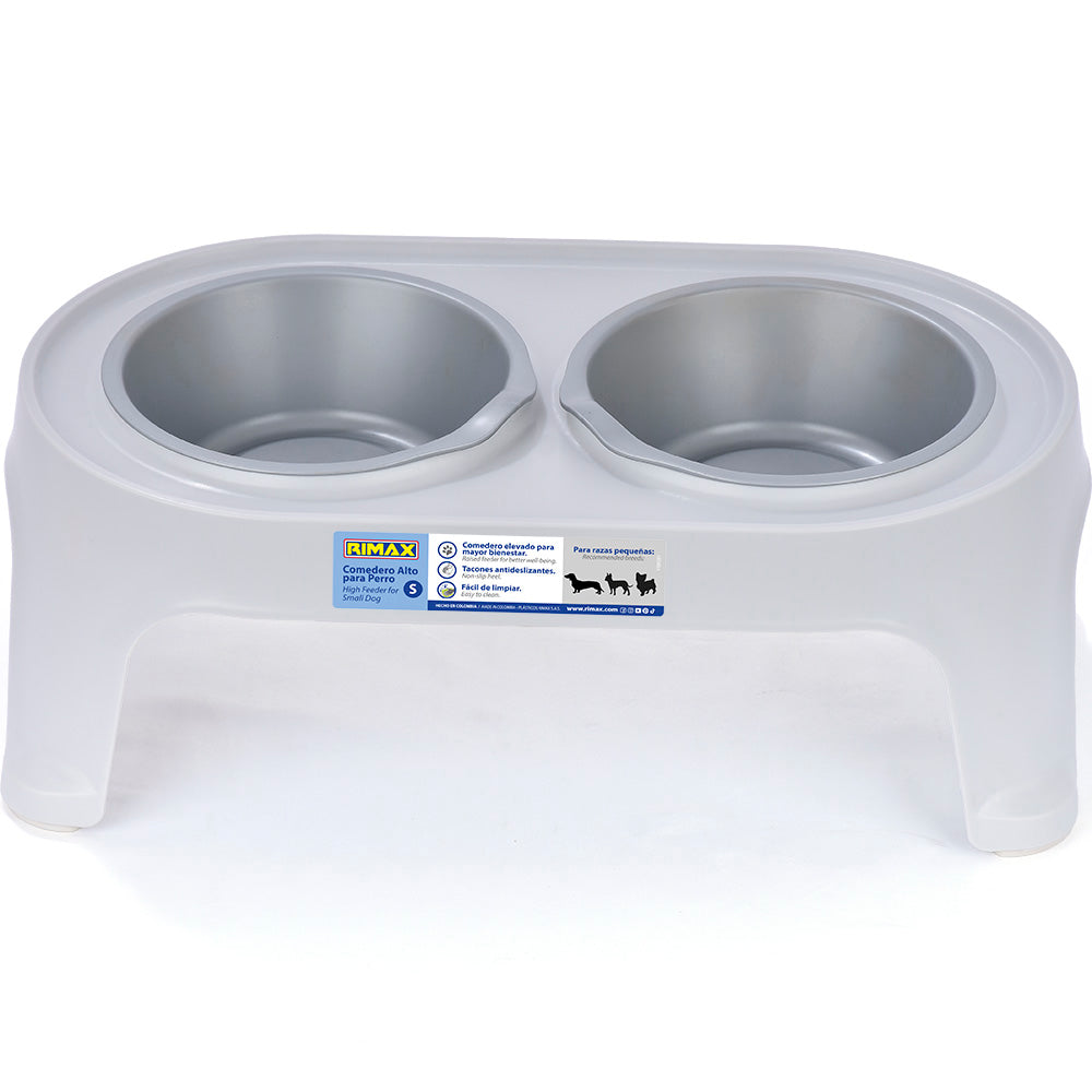 el comedero alto contiene dos recipientes fáciles de extraer, cada recipiente con capacidad de 8, ml , Diseño de borde elevado que evita el derrame de comida y agua al piso, Tacones antideslizantes, Textura lisa mate para fácil limpieza