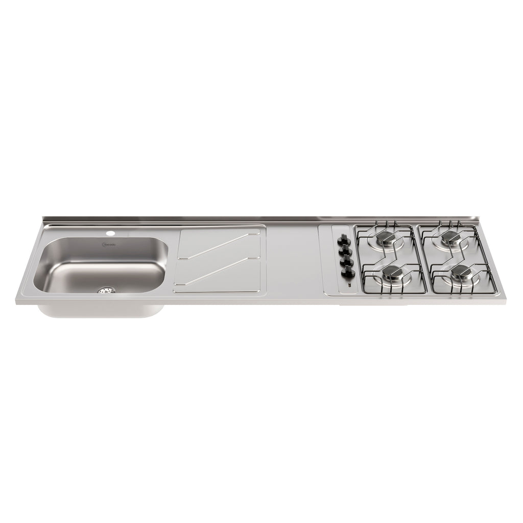 Mesón en material de acero inoxidable con 3 funciones en una lavado, zona de trabajo con declive para escurrir el agua a la poceta y zona de cocción de alimentos. Con sus 120 cms de superficie, este mesón ofrece el espacio ideal para trabajar cómodamente, posee un lavaplatos amplio con 13.7cm de profundidad para evitar salpiques de agua y con mayor amplitud para lavar, y una zona de cocción con parrillas amplias que permiten mayor seguridad al cocinar con recipientes de gran tamaño. Mesón en material de acero inoxidable con 3 funciones en una lavado, zona de trabajo con declive para escurrir el agua a la poceta y zona de cocción de alimentos. Con sus 120 cms de superficie, este mesón ofrece el espacio ideal para trabajar cómodamente, posee un lavaplatos amplio con 13.7cm de profundidad para evitar salpiques de agua y con mayor amplitud para lavar, y una zona de cocción con parrillas amplias que permiten mayor seguridad al cocinar con recipientes de gran tamaño.