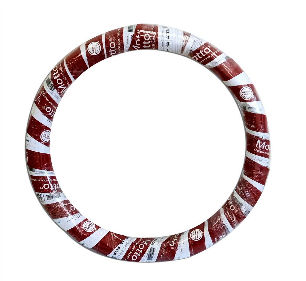 "El unico alambre para cerca electrica del mercado que te garantiza la medida exacta. Con contenido de alto carbono para mayor resistencia y triple capa de zinc. Alta conductividad. Protección a la corrosión tres veces mayor que los alambres convencionales gracias a su triple galvanizadoBaja elongación, Fácil manejo e instalación Posee uniformidad en el diámetro y el recubrimiento de zinc" ALAMBRE GALVANIZADO CERCA ELÉCTRICA C14x500M HC MOTTO