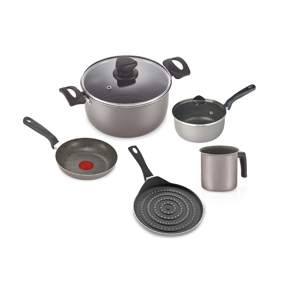 Bateria 7pz IMUSA Talent te ayudará ahorrar tiempo en la cocina, cuenta con Antiadherente TRIFORCE, 3 veces más durable comparado con los productos de la línea básica de Imusa. Base difusora especial para distribuir de manera uniforme el calor. ¡Es hasta 3 veces más durable! Cuenta con Termo Señal cambia de color e indica que está listo para empezar a cocinar, así conservas mejor la textura y nutrientes de los alimentos. Cuenta con el sello de Calidad IMUSA. Los productos de Imusa están fabricados con aluminio de alta pureza, certificados que cuidan y protegen la salud. Cumple con las normas y estándares internacionales, para que sea amigable con el ambiente y cuide la salud.