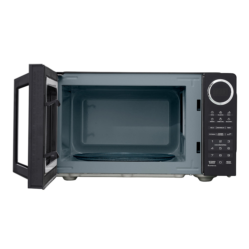 "• Usa la función Express cooky cocina los alimentos más rápido y fácil. • Activa la función ECO y apaga el displaycuando no se usa, logrando un mayor ahorro de energía. • 6 selecciones rápidas: Ahora con los programas especiales podrás cocinar tus alimentos de una manera rápida y sin preocupaciones. • 10 niveles de potencia: Cocina distintos platillos gracias a la variedad de potencia." "• Display LED en español • Timerde cocinado • 6 selecciones rápidas de cocinado • Seguro para niños • Función de descongelado • Botón de +30 segundos • 120 V / 60 Hz"