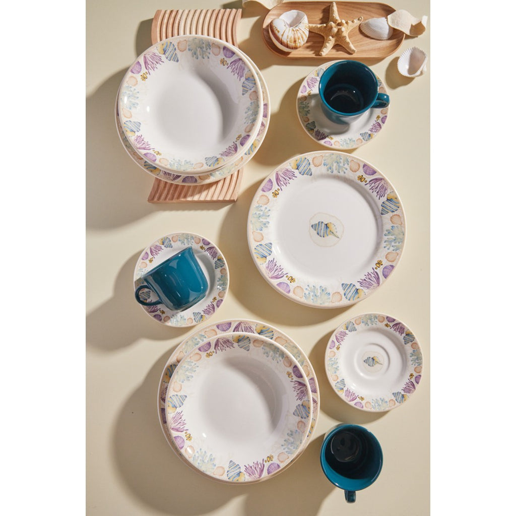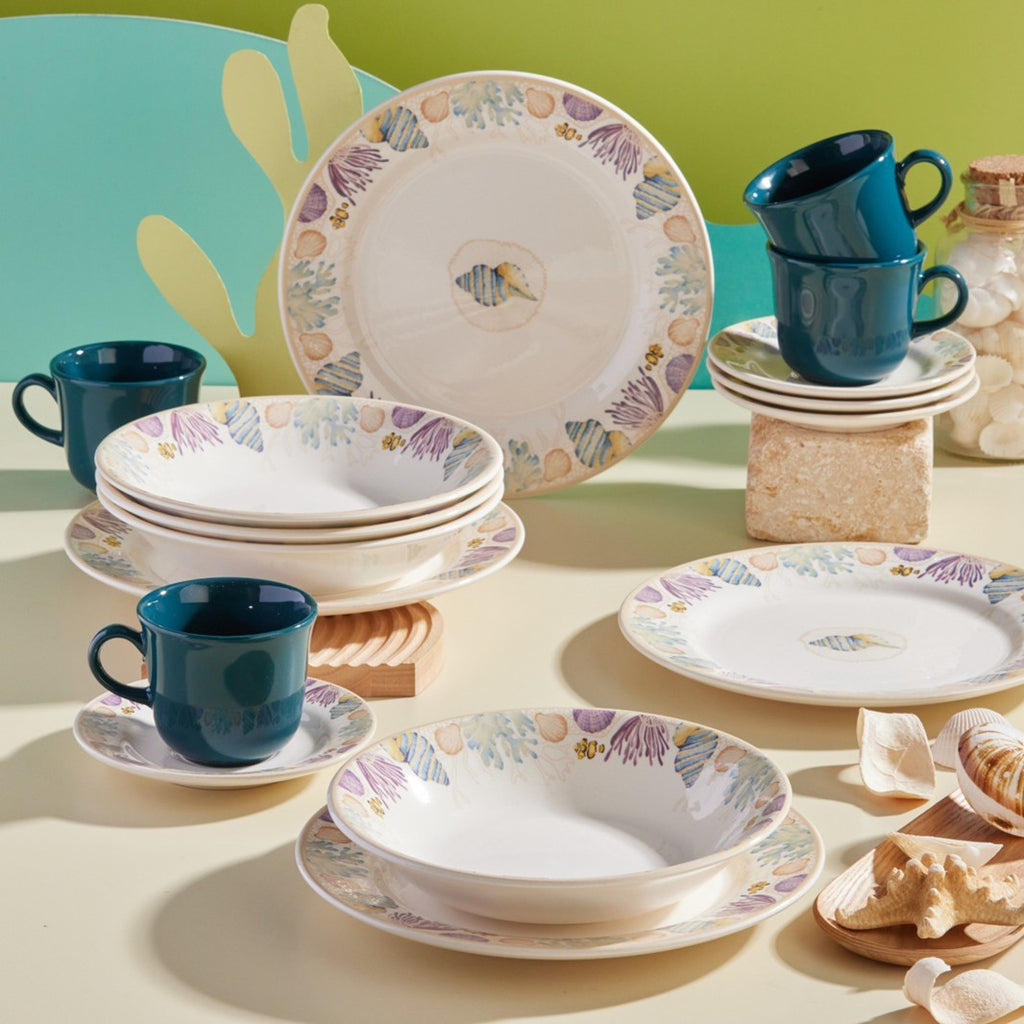 VAJILLA 4-16 BAHARI DA UN NUEVO SIGNIFICADO A TUS MOMENTOS DE COMIDA CON ESTA VAJILLA INSPIRADA EN EL OCÉANO VAJILLA 4-16 BAHARI CON DIFERENTES TONALIDADES E ILUSTRACIONES DEL OCEANO