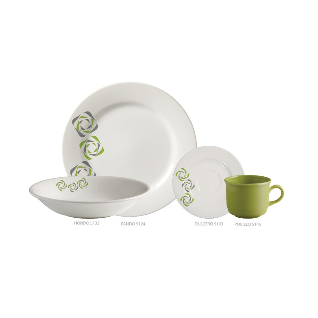 VAJILLA 4-16 BORJA CON UN DISEÑO VERDE ELEGANTE Y UNICO VAJILLA 4-16 BLANCA UN DISEÑO VERDE