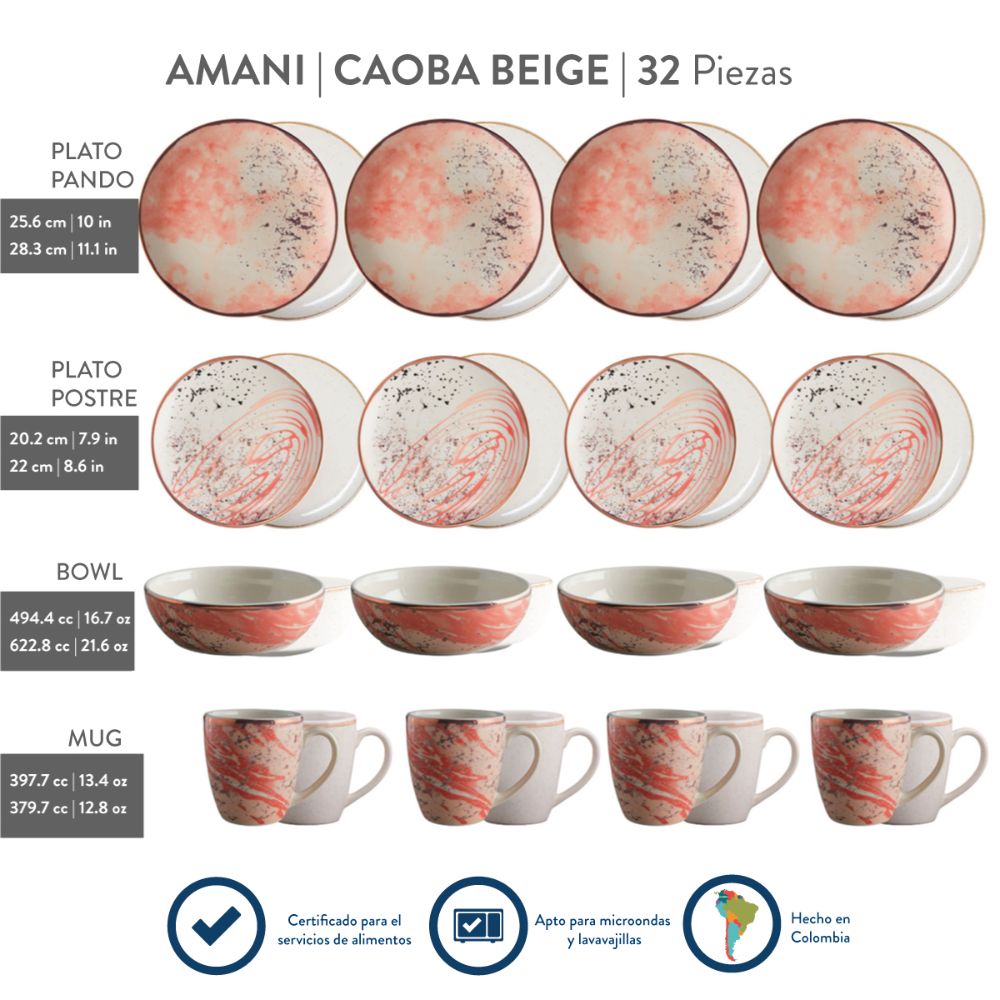 Vajilla Corona Amani Caoba Beige 32 Piezas 8 Puestos VL1964080632