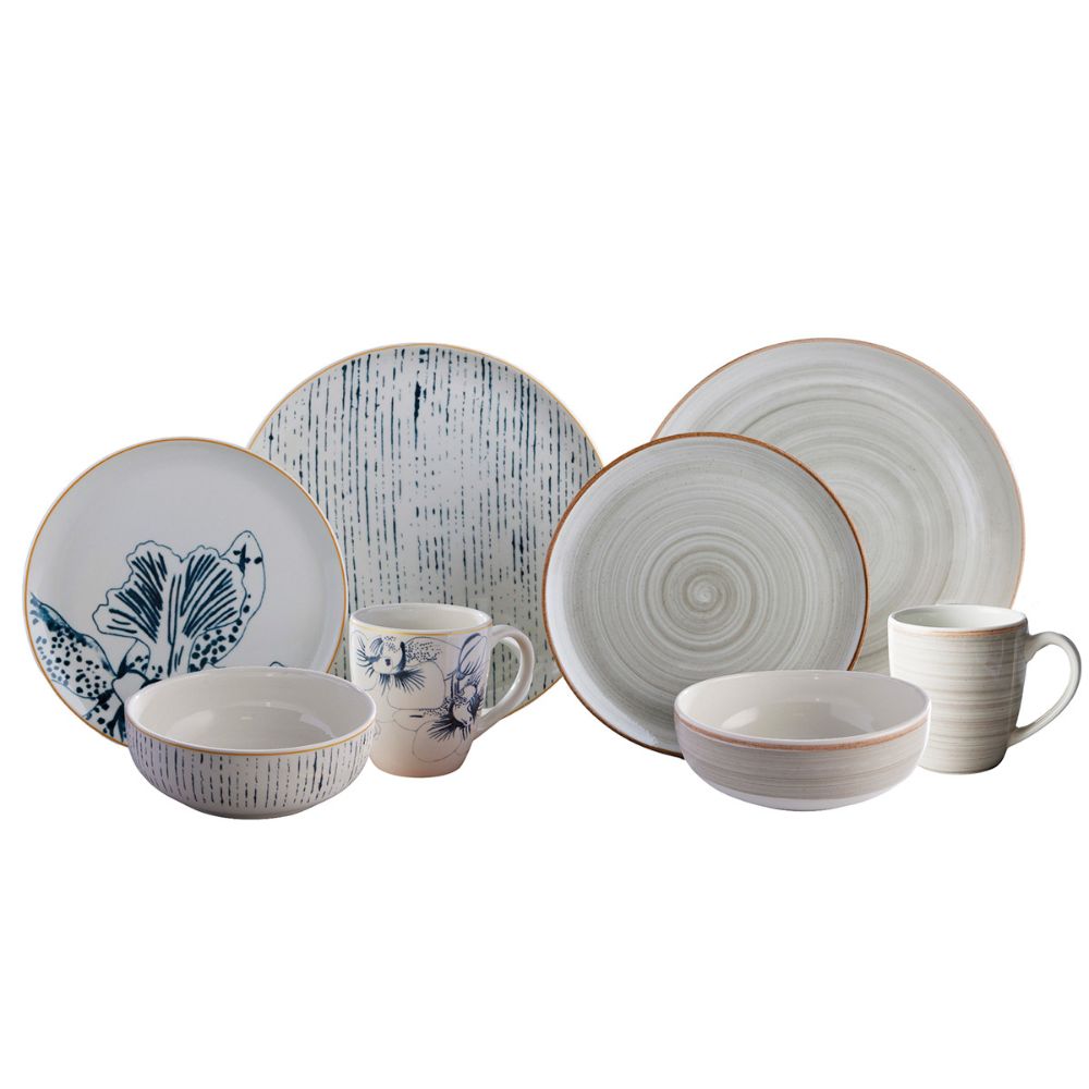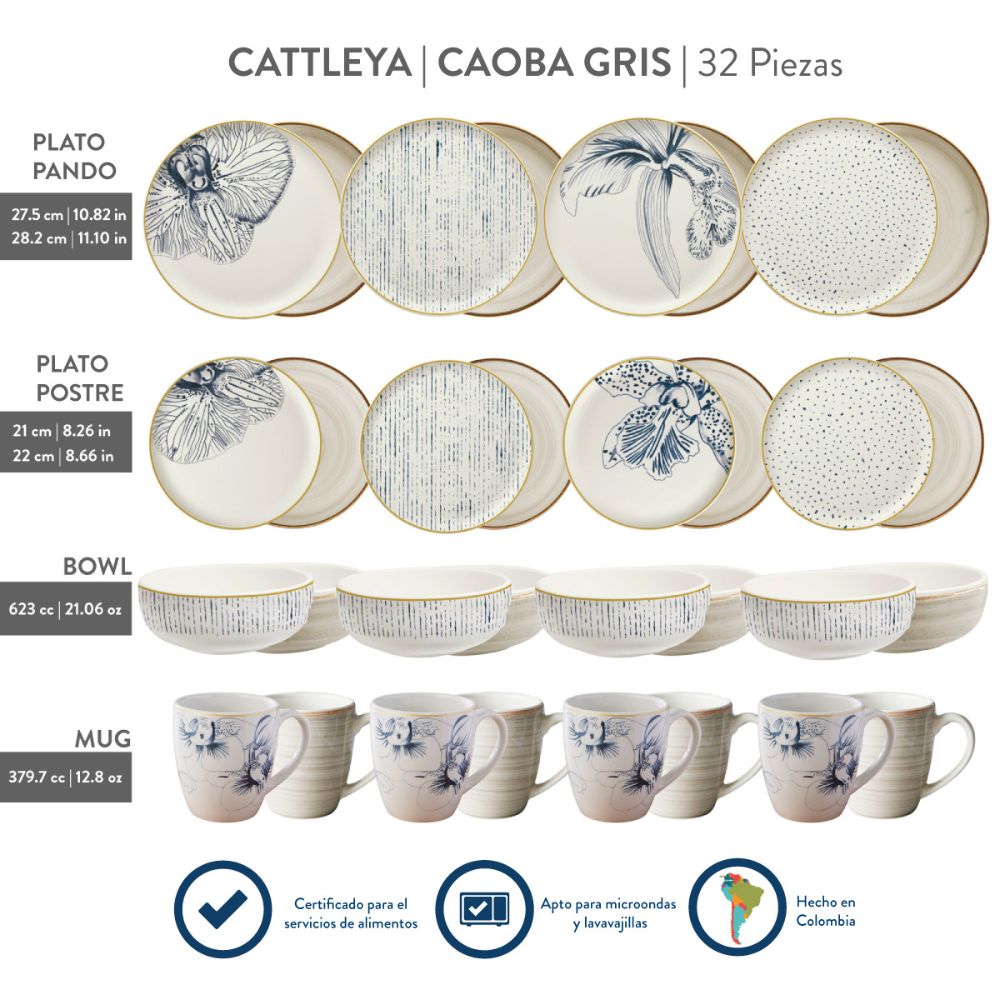 Vajilla Corona Cattleya Caoba Gris 32 Piezas 8 Puestos VL1964080232