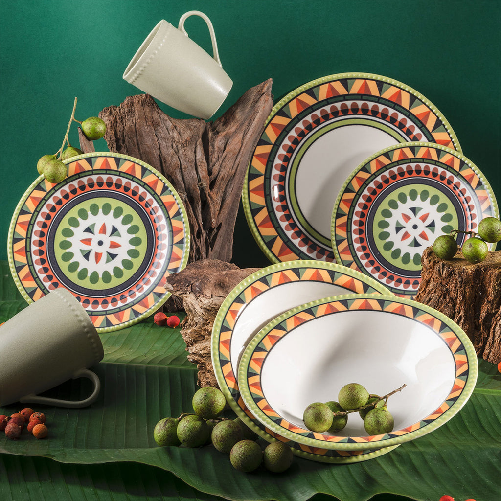 VAJILLA 4-16 ETNICA IMPACTA A TU FAMILIA CON LOS COLORES TAN VIBRANTES LLENOS DE VIDA CON LA VAJILLA ETNICA