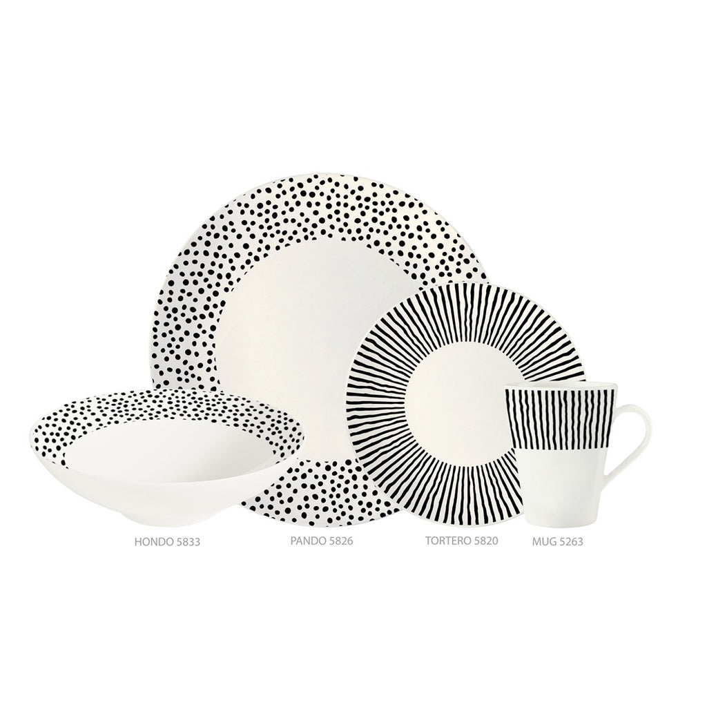 VAJILLA 4-16 LUNARES Y RAYAS CON UN DISEÑO INNOVADOR CON COLORES CLASICOS VAJILLA 4-16 LUNARES Y RAYAS CON UN DISEÑO BLANCO Y NEGRO