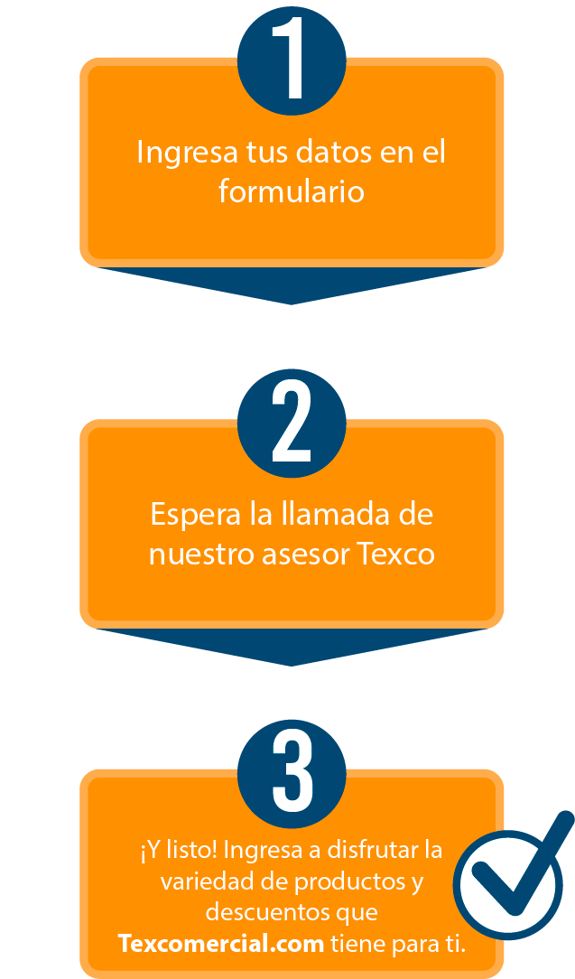 Bienvenido a la sección de usuarios de Texcomercial.com, si tienes un negocio y quieres conseguir los mejores precios, promociones y servicio para tu tienda, te invitamos a diligenciar el siguiente formulario, esperar la llamada de nuestro asesor y entrar a comprar en la mejor tienda mayorista en línea del país.