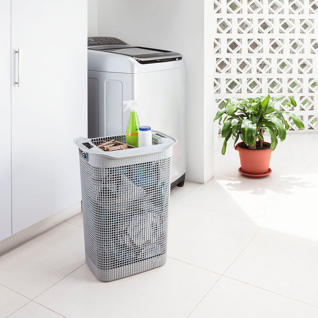Moderna, tapa con espacio aprovechable, paredes con tejido decorativo imitación lino, tamaño ideal Cesta para Ropa Linum con tejido imitación lino y textura mate. Tapa con espacio para organizar accesorios o prendas pequeñas. Manijas ergonómicas y capacidad de 51 litros. Los colores de vanguardia que van con el estilo de tu hogar.