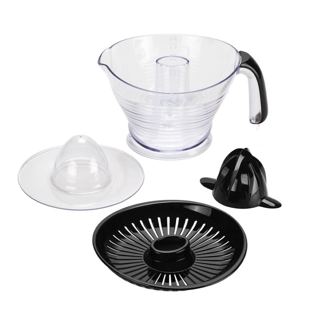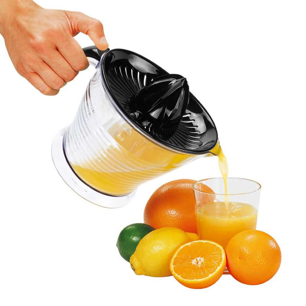 Exprimidor con un exclusivo cono con diseño puntiagudo para exprimir cualquier tipo de cítrico sin necesidad de cambiar el cono. Su motor de doble rotación se acciona automáticamente al presionar la fruta. • Su potencia de 30 watts se traduce en una mayor eficiencia permitiendo ahorrar tiempo y obtener un mejor resultado. • El diseño de su jarra con capacidad de 1 litro es ideal para llevar a la mesa. • Todas sus partes son desmontables para facilitar la limpieza. • Cuenta con un sistema de seguridad mecánico que asegura la jarra a la base para mayor estabilidad y menor desgaste durante su uso. • Sus patas antideslizantes otorgan una mayor seguridad. Garantía de 1 año, respaldo y calidad IMUSA. Solo para uso doméstico. No calientes o utilice el producto sin alimento en el interior. No uses utensilios metálicos ya que pueden deteriorar el antiadherente. No almacenes alimentos en el producto ya que puede generar manchas y s de color. No cortes alimentos dentro del producto. Usar utensilios de silicona, madera o nylon.