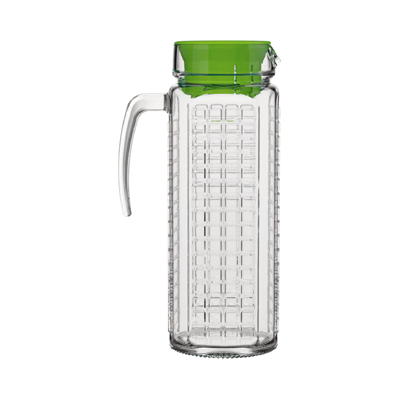 "Una jarra de vidrio es un recipiente transparente y versátil, ideal para servir bebidas frías como agua, jugos o cócteles. Su diseño permite que puedas ver el contenido, lo que añade un toque estético a la presentación. Además, el vidrio es un material seguro para alimentos y no afecta el sabor de las bebidas. Ya sea en reuniones familiares, fiestas o simplemente en la vida cotidiana, una jarra de vidrio es una elección práctica y elegante para disfrutar tus bebidas favoritas." Cristar-Nadir
