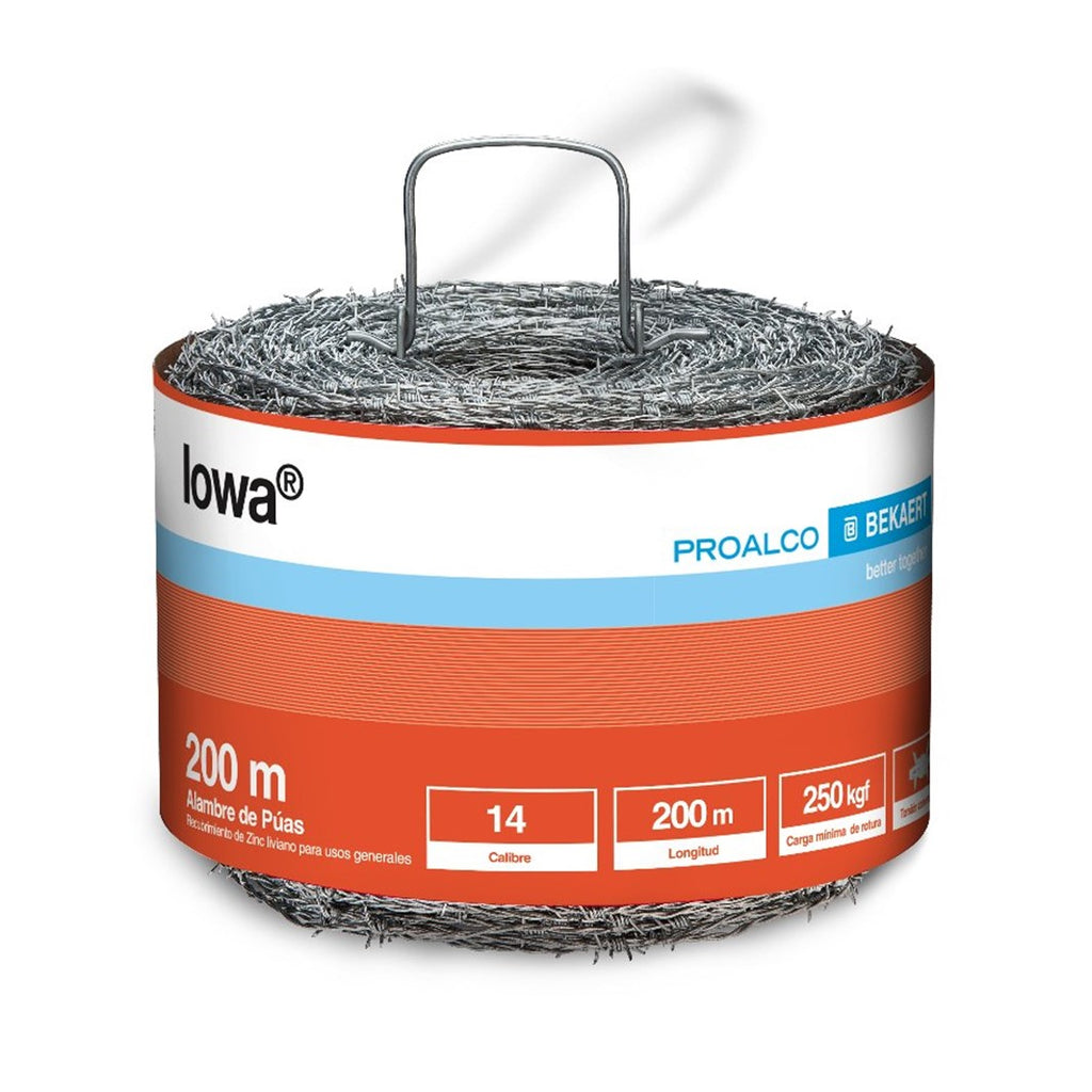¡APROVEHA! Descuento por volumen. El alambre de púas Iowa® es fabricado con alambre galvanizado. Es un alambre de púas de tradición, de calibre grueso con la púa entrelazada en la línea del alambre. Garantiza que sus animales permanezcan en terrenos seguros. Ideal para climas templados y fríos. Resistencia a la rotura. Puntas afiladas. Apariencia brillante. Torsión constante Púa entrelazada en la línea de alambre.