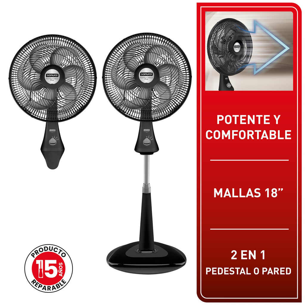 "• Nuevas mallas • Mayor flujo de aire y bajo nivel de ruido.• Oscilación Horizontal para una mayor distribución del aire.• Práctico para el uso en diferentes posiciones.• Exclusivo sistema fácil y seguro para ajustar la inclinación vertical.• Motor de 8, W.• Menor consumo de energía.• Ventaviola de seis aspas.• Tecnología superior y diseño de avanzada que permite alto desempeño.• Piezas plásticas para fácil limpieza" Los nuevos ventiladores Comfort Maxx Plus, aportan un mayor flujo de aire gracias a sus nuevas mallas, 8,W de potencia, sus 6 aspas. Estos ventiladores vienen en una presentación 2 en 1 con la posibilidad de usarlo tanto en forma de pedestal como de pared. Su tecnología de vanguardia y diseño aerodinámico garantizan un alto desempeño y con un respaldo de 2 años de garantía.